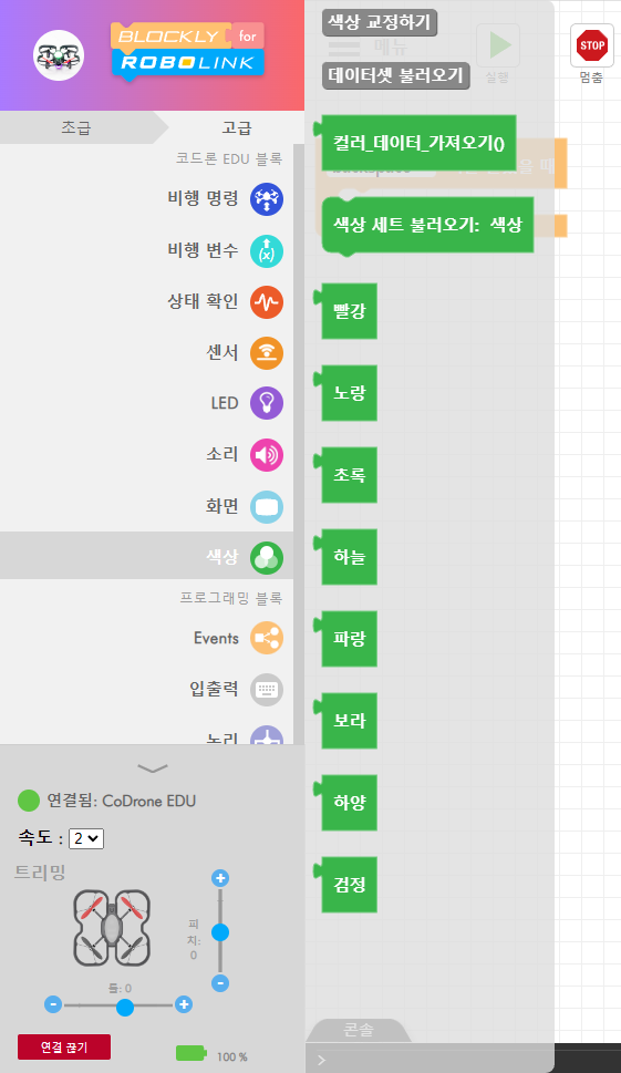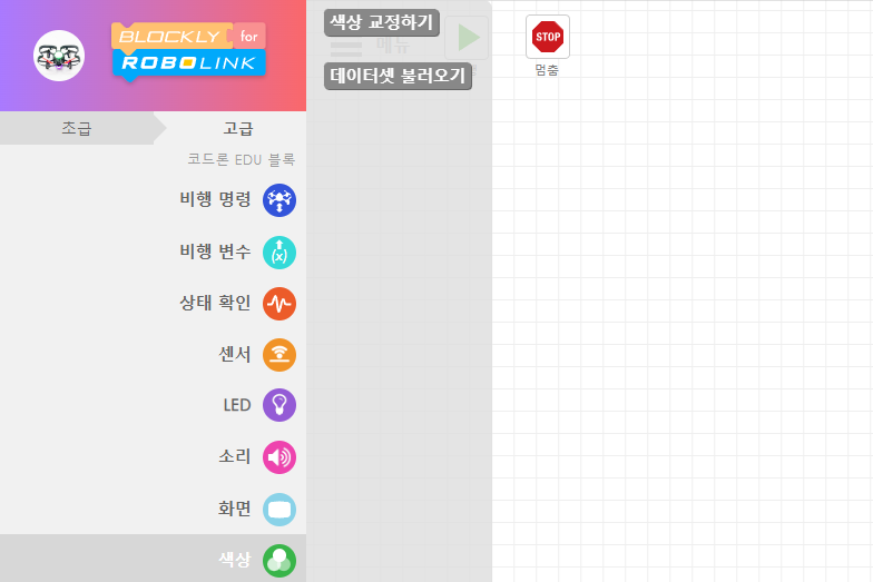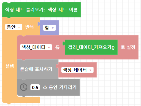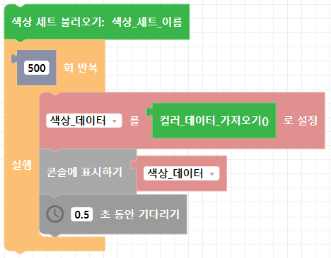 먼저 작업영역에 색상 세트 불러오기 블록을 추가합니다.