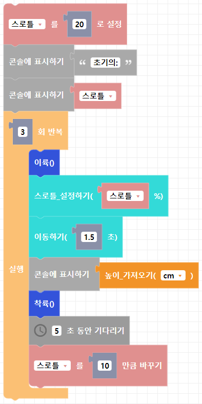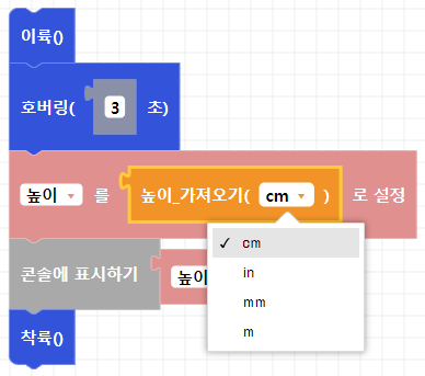 코드론 EDU와 페어링한 후 바닥에서 드론의 높이를 가져올 변수를 만듭니다. 이름은 시작_높이