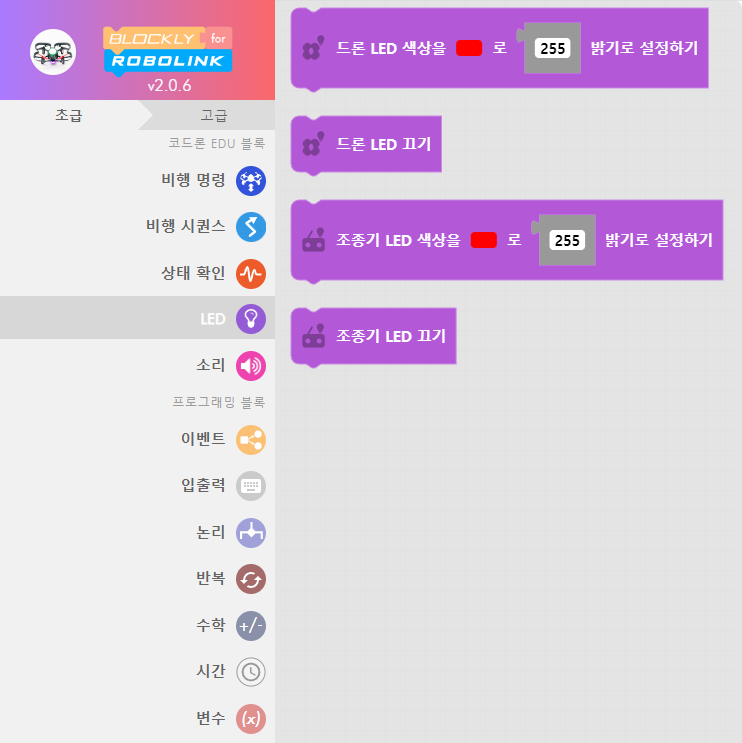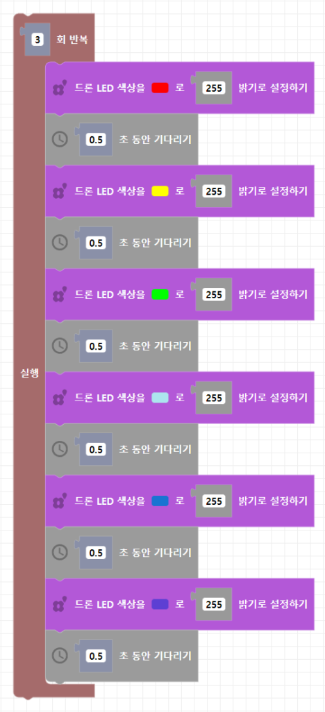 코드론 EDU에는 2개의 RGB LED가 있습니다. 하나는 드론 중앙에, 다른 하나는 조종기에 있습니다. RGB는 빨강, 초록, 파랑을 나타냅니다. 이 세 가지 색상을 사용하면 상상할 수 있는 거의 모든 색을 만들 수 있습니다!