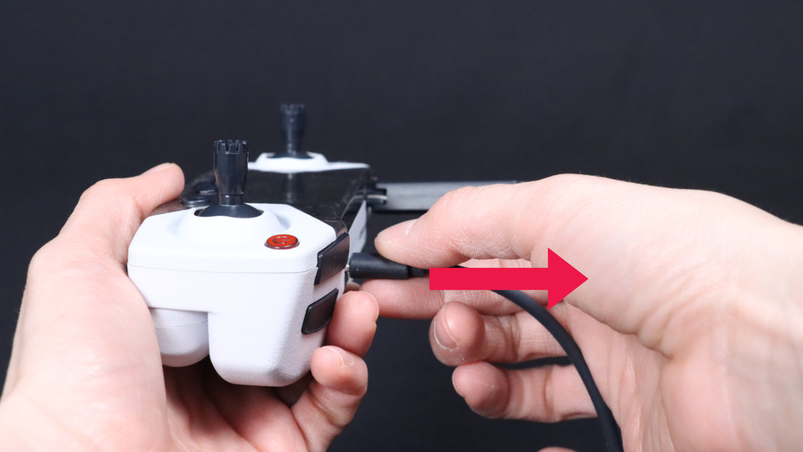 Powering through USB cable is the preferred method. The USB-C port is underneath the antenna on your controller. Connect the other end of the cable to a USB port on your computer.