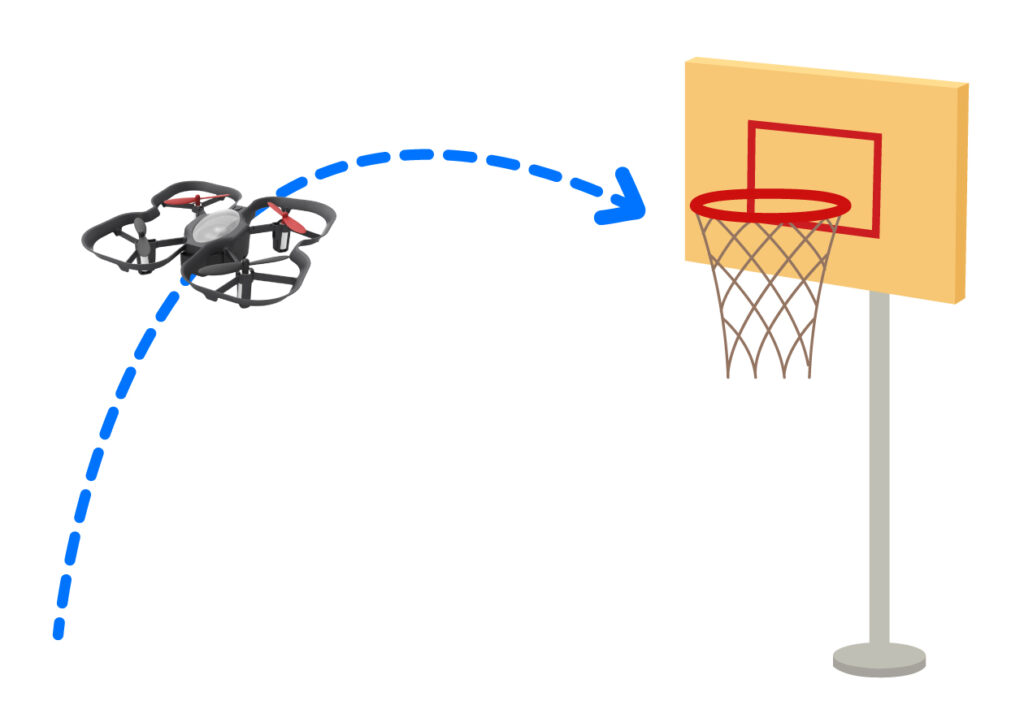 - Your program must have the CoDrone EDU fly towards the hoop, detect the wall/backboard, and fly through the hoop before landing