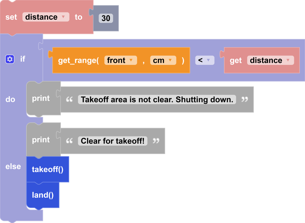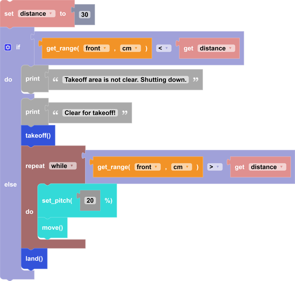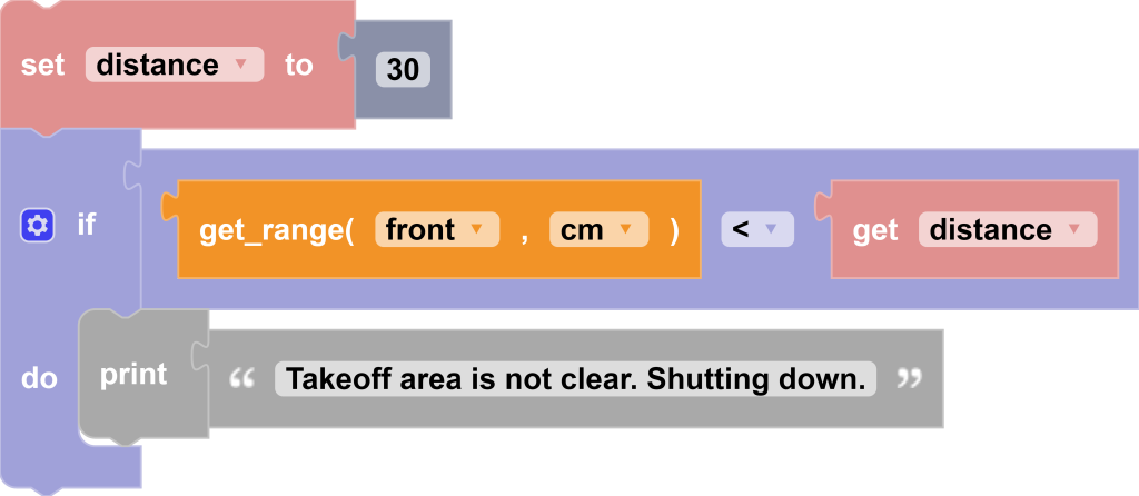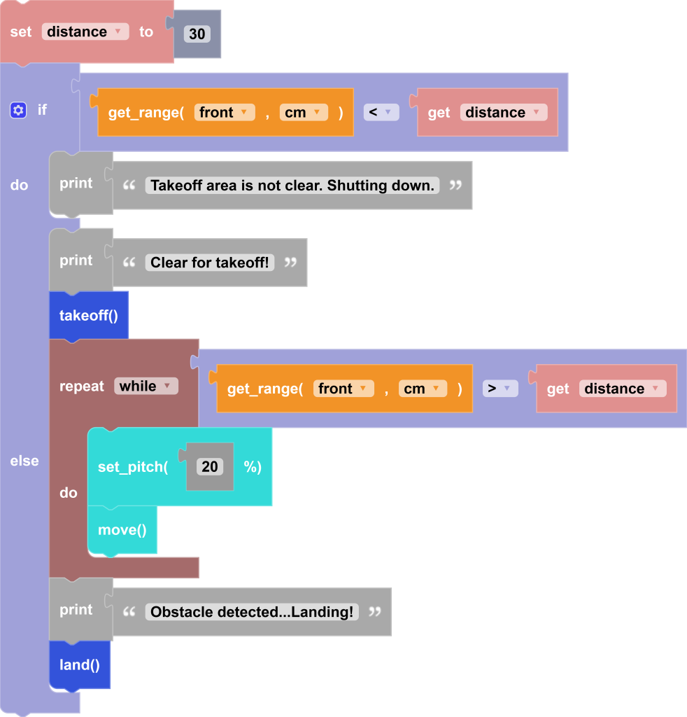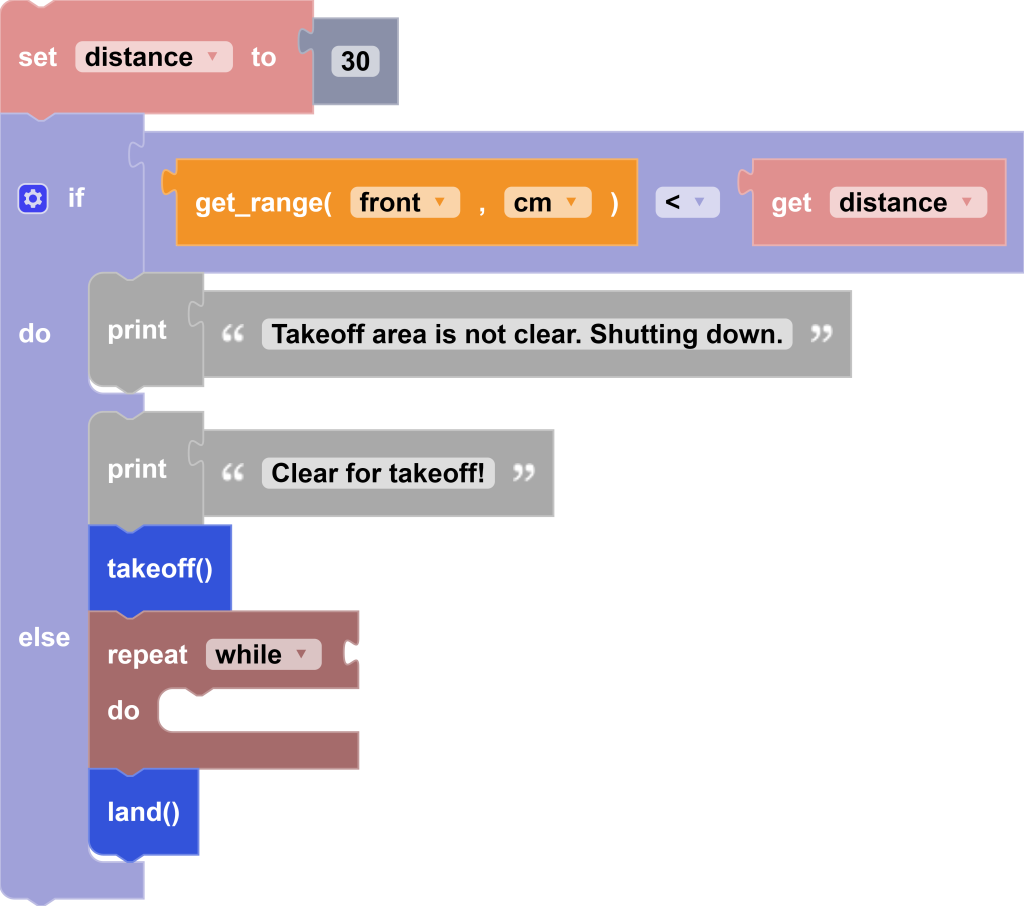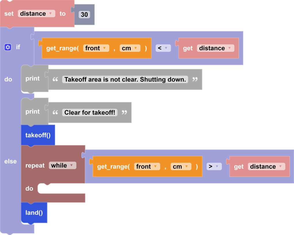For this challenge, you will be programming your CoDrone EDU to fly as close to the wall as possible! Using the front range sensor, try and write a program that will stop the CoDrone once it reaches a certain distance from the wall; that distance will depend on where you are flying your CoDrone EDU, so make sure to test out different values!