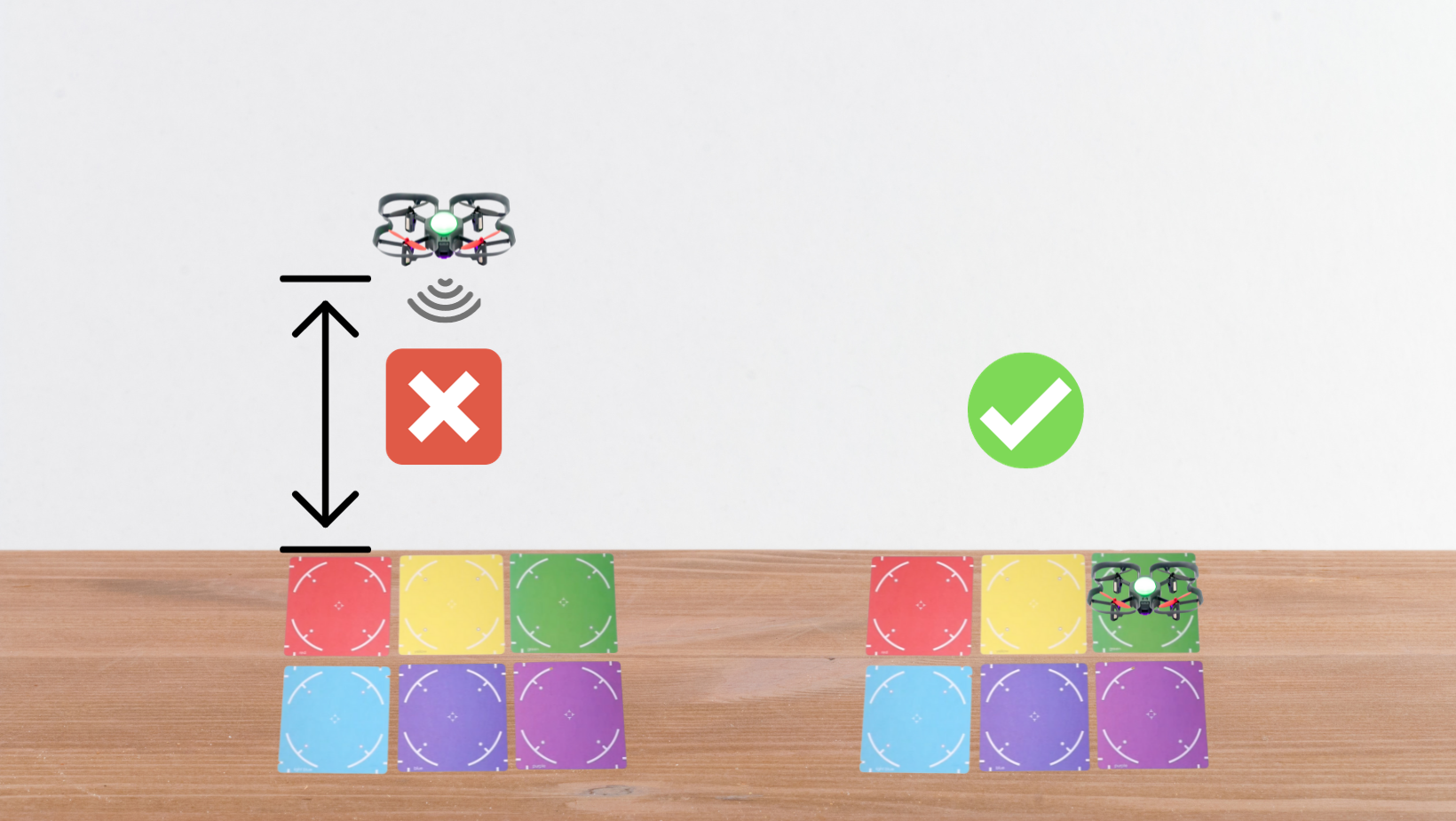 Make sure you’ve tested your color data set to make sure it is providing the correct guesses by placing your drone on each color card.