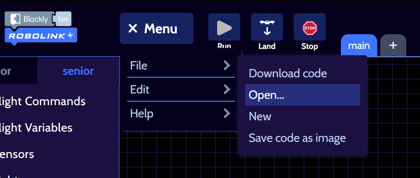 Blockly will add new blocks for you in the “Colors” menu. There will be a new block available for every color that you trained. Open the menu now to see these blocks. Your color training is complete and ready to use!