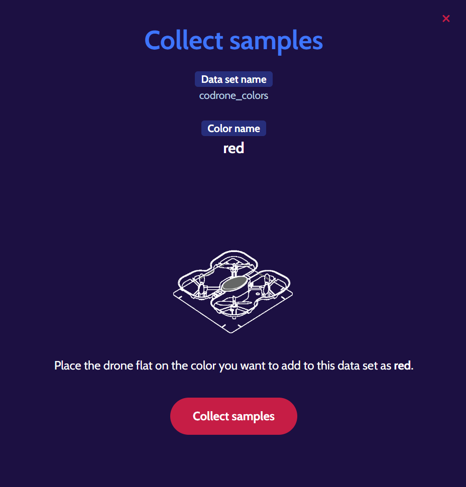Once your drone is flat on the surface and its color sensors start illuminating, you can click on ‘Collect samples’.