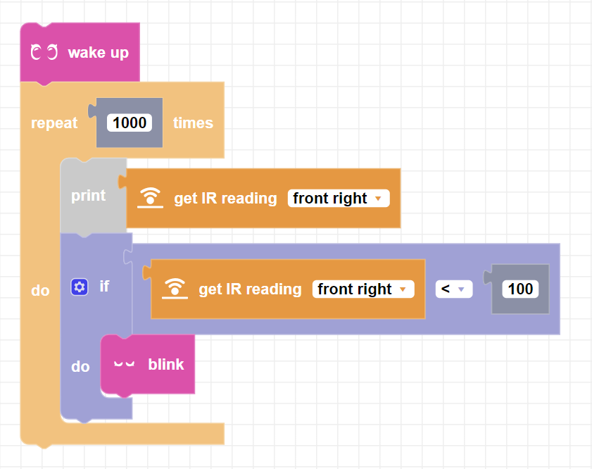 Note: If the IR sensor value never changes (always at 0 or always at 255) it might be a sign that the sensor is broken or that it is stuck inside the shell.
