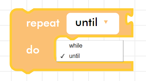 Click on the dropdown menu and select “until”. This is because we want Zumi to drive forward until she sees a stop sign.